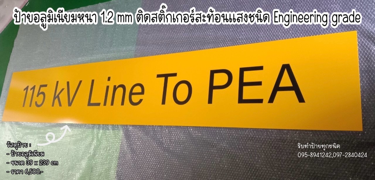 ป้ายอลูมิเนียม หนา 1.2mm ติดสติ๊กเกอร์สะท้อนแสง ชนิด Engineering grade ขนาดป้าย 39 x 239 cm